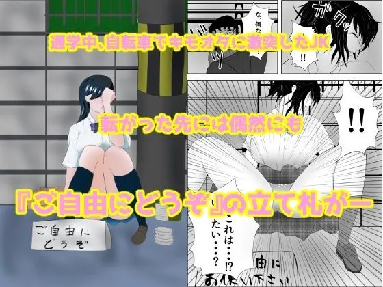 軒先でよく見かける『ご自由にどうぞ』。これが全ての始まりだったー JKが自転車で通学中、飛び出してきたキモオタにぶつかってしまう! お互いに吹き飛ばされたが、JKが転がった先には 『ご自由にお使いください』の立て札があった! それを見たキモオタは言葉通り『ご自由にお使い』するのだった! キモオタに貪られた後、気絶したJKは ホームレスに連れ去…