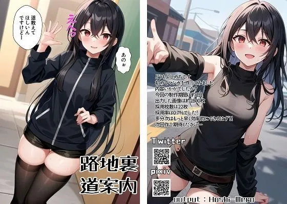 【2023-06-13】に発売した、同人サークル【Hushi-Mero】の中出しコレクションです。【裏路地道案内】12ページ全てネタバレします。
